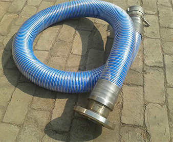 【軟管結(jié)構(gòu)】:管壁有多層POLYPROPYLENE聚合物膜及合成纖維織物加強(qiáng)層構(gòu)成;內(nèi)外兩層螺旋金屬線纏繞;導(dǎo)靜電設(shè)計(jì);特殊要求可提供尼龍內(nèi)層材料